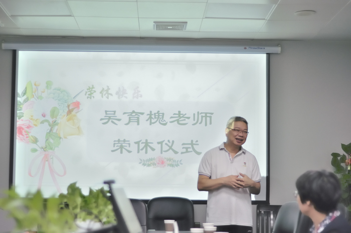 在老师们热烈的掌声中,吴育槐发表了荣休感言。吴育槐表示,自上世纪80年代在中心工作,见证中心的发展历程,很荣幸为中心所取得的成就贡献过力量;在中心与多位老同事共事,承蒙大家的关照,向他们表示感谢。吴育槐非常满足于自己在中心工作的时光。