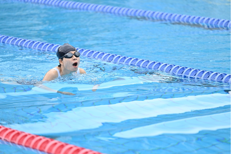 当天9时50分许,体能达标活动后,即进入竞赛环节。随着一轮轮发令哨声响起,游泳健将们劈波斩浪,奋勇争先。随着比赛的推进,联队不断收获好成绩,在女子甲组100米蛙泳比赛中更是获得了第一名的好成绩。最终联队斩获团体总分第六名。