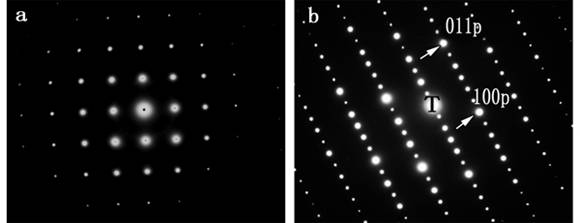 下图为晶体的电子衍射花样,其中图a为一般晶体的电子衍射花样,而图b则是一种具有沿[111]p方向具有六倍周期的有序钙钛矿的电子衍射花样,由这些衍射花样可以看出来,无论是无序还是有序晶体,其倒空间都具有平移周期对称的特点(相应的正空间也应该具有平移对称的特点)。事实上在准晶发现以前,平移周期对称被当作晶体在正空间中的一个本质的特点,晶体学中的点群和空间群就是以晶体的平移对称为基础推导出来的。