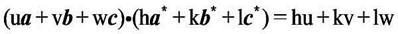 设正空间中的某一矢量为:ua+vb+wc;倒空间的任一矢量为: ha*+kb*+lc*;则上面两矢量的点乘为:![]()