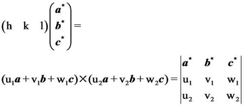 B、已知两晶向[u1v1w1], [u2v2w2],求其构成的平面(hkl),只须将两个正空间矢量叉乘即可;