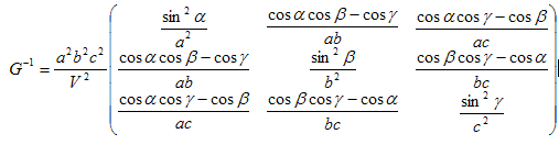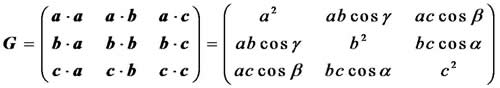G被称为正空间到倒空间变换的度量张量,它是晶体学计算中一个非常重要的参量。