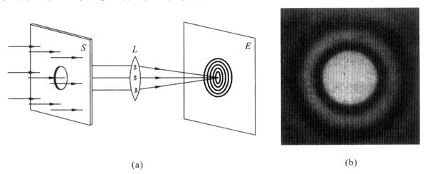 圆孔的夫琅禾费衍射示意图(a)和衍射圆斑(b)
