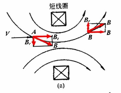 下图是电磁透镜的示意图,从图中可以看出电子束通过透镜时的受力情况。