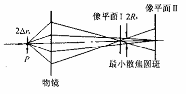 从原理上讲,当透镜的焦距一定时,物距和像距的值是确定的,这时只有一层样品平面与透镜的理想物平面相重合。而偏离理想物平面的特点都存在一定程度的失焦,它们在透镜的像平面上将产生一个具有一定尺寸的失焦圆斑。如果失焦圆斑的尺寸不超过由衍射效应和像差引起的散焦斑,则不会影响电镜的分辨率。