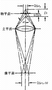 最小散焦斑在原物平面的折算半径值可表示成: ![]()