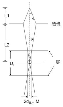 同样的道理,由于像平面的移动也会引起失焦,如果失焦斑尺寸不超过透镜因衍射和像差引起的散焦斑尺寸,也不会影响图像的分辨率。定义像平面允许的轴向偏差为透镜的焦长,用DL表示,则它与透镜的分辨本领Δr0,像点所张的孔径半角β之间的关系式可以表示成(如上图所示):