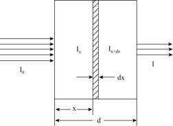 式中μ称为线衰减系数,x为试样厚度。我们知道,衰减至少应被视为物质对入射线的散射和吸收的结果,系数μ应该是这两部分作用之和。但由于因散射而引起的衰减远小于因吸收而引起的衰减,故通常直接称μ为线吸收系数,而忽略散射的部分。