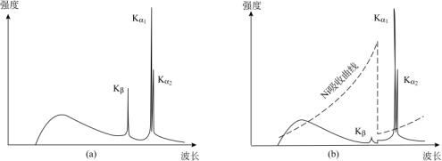 图1.9 Cu的X射线光谱在通过Ni滤片之前(a)