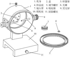 微区衍射仪是按平行光束型衍射几何设计的,使用特殊的大窗口闪烁检测器或环形窗口的正比检测器。工作时,检测器沿入射线方向移动,通过固定直径的环形狭缝对各衍射锥面的总强度依次地进行测量。由于它使用细平行光束,故能对样品的一个微区(直径可小至30μm)进行衍射分析。