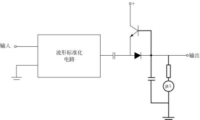 计数率表的电路是一种频率~电压线性变换电路,是以往应用模拟纪录的衍射仪的测量系统的基本电路。它能把随机输入的脉冲平均计数率转换成为与之成正比的直流电压模拟值,这样,借助于计数率表便能用mV记录仪测量记录扫描过程接收到的X射线强度的变化,得到衍射曲线。图3.7示出了计数率表的原理图。计数率表的工作原理可简述如下:脉冲序列输入先通过波形标准化电路,使每个输入脉冲都具有相等的幅度Vi;每个幅度标准化了的脉冲经过T、D构成的晶体管泵电路将给予积分RC电路的电容以同样的电荷,所以,电容器C的电压Vo(或通过漏电阻R的电流)的值将正比于单位时间作用在输入端的脉冲平均数目N,Vo = C'RNVi。因此指示Vo或指示通过R的电流的仪表可以直接用计数率(脉冲数/秒)为单位来刻度。